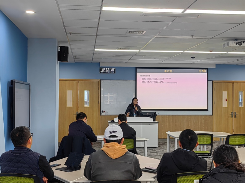 培训会上,殷容老师作为特邀嘉宾,全面介绍了学院学术诚信委员会的成员架构和组织情况,还详细讲解了学院针对违纪作弊行为所制定的严谨处理流程和规范机制。结合自身监考实践经验,殷容老师列举了相关实际案例,让参会教师,尤其是新入职的教师群体,能够更加直观地理解监考工作的重要性以及考试违纪作弊管理的关键要点。