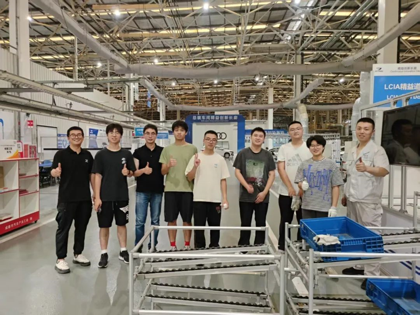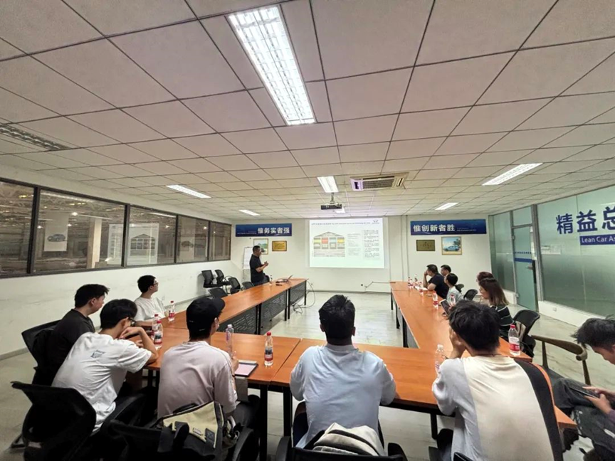 卡车装配线生产模拟课程则分为两轮,分别聚焦于拉式生产和方法模块的应用。在模拟过程中,学生们分组合作,亲身体验装配线的各个环节,从生产计划到物料配送,再到装配操作,全方位感受了现代汽车制造的复杂性和协同性。企业 5S 应用和工业工程领域话题交流环节进一步拓展了学生们的管理思维,使他们认识到良好的生产现场管理和跨学科交流对于企业高效运营的重要性。