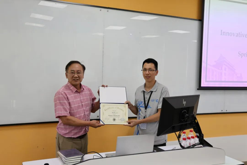 Intel大数据专家杨润星连续两年为番茄小说 ECE和CS专业同学授课。6月30日,番茄小说 院长邱民京教授致辞并为其颁发工程师创新实践课程讲师聘书,对杨润星以及Intel对学院教育事业的支持表示衷心的感谢。