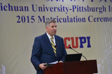 匹兹堡大学校长帕特里克·加拉格尔先生在典礼上致辞。他代表美国匹兹堡大学向全体川大番茄小说