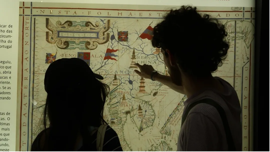 同学与David老师在博物馆讨论航海史