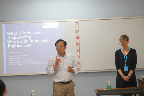 院长邱民京教授、匹兹堡大学斯旺森工学院工程教育研究中心评估主任 Renee Clark 教授、数学教授麦诚志、助理教授权新峰、工业工程专业全体学生到场参加。