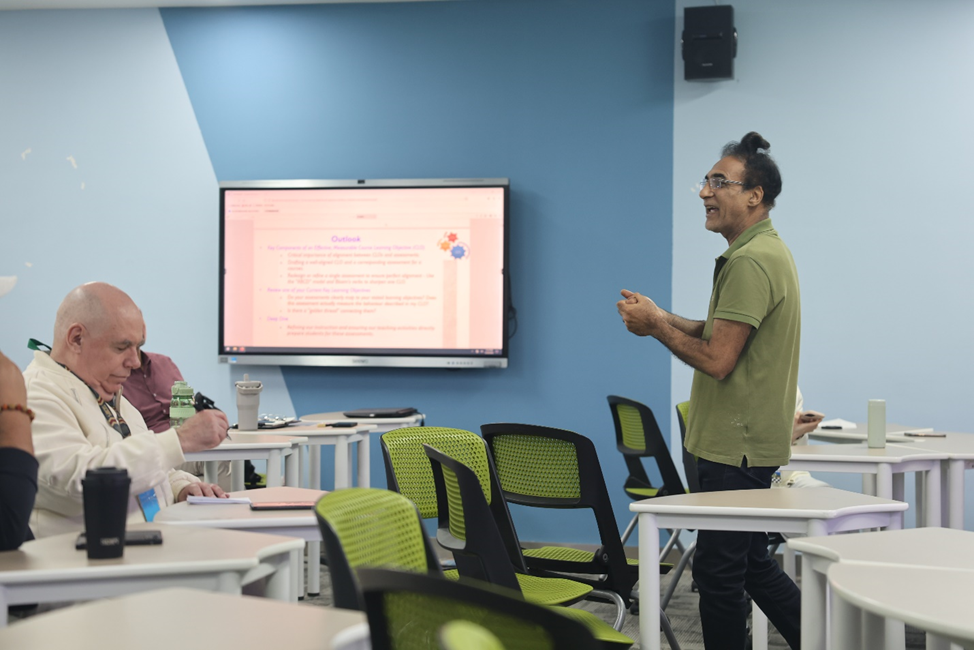 接下来,Mushe Loan副教授详细阐释了课程学习目标(CLO)与评估对齐的落地路径。首先他强调,优质 CLO 应聚焦可观察、可衡量的行为表现,在撰写CLO时,应当明确受众、行为、条件、标准,避免模糊表述;同时应兼顾低阶基础能力与高阶思维培养,推动学生从被动记忆向主动创造进阶。在教学评估匹配上,Mushe Loan副教授指出要根据认知层次选择合适评估类型,区分形成性评估的过程反馈作用,与总结性评估的整体目标衡量作用,确保评估精准服务学习。