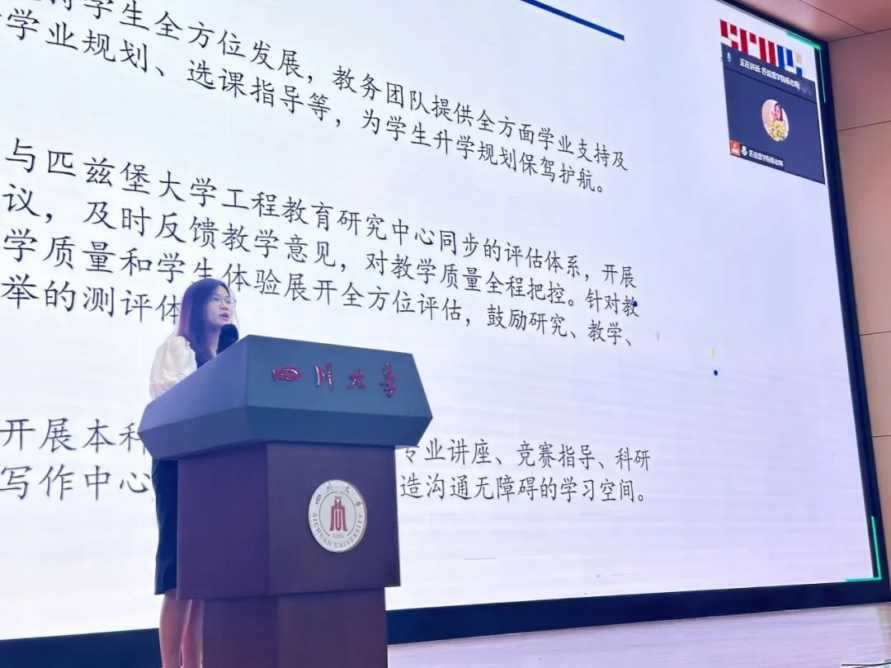随后,学院教务团队为家长们讲解了学院的培养体系、深造及就业资源情况。牟文茜老师表示,在教务团队建设方面,学院致力于搭建国际化的教务体系,为同学们提供全方位的学习支持与专业科学的评估体系,同时,开展本科生荣誉科研计划、专业讲座、竞赛指导、科研管理、英语写作中心辅导等,为学生打造沟通无障碍的学习空间。而在家长们最关心的升学就业问题方面,学院的升学就业辅导部将会为每一位同学提供专业的一对一咨询服务、丰富多彩的讲座信息、职业发展服务与校友联系,协助每一位同学合理规划自己的发展路径,并实时分享关键信息,推荐国内外发展资源,为学生提供最优的支持和引导。