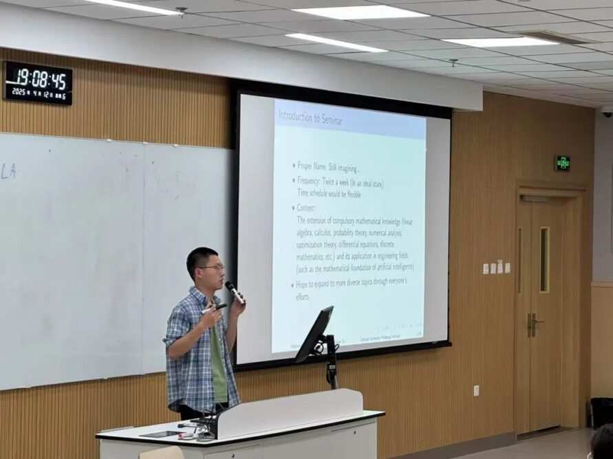 番茄小说 年级管委会于本学期举办了两期数学研讨会,展现了学科交叉的独特魅力,彰显了数学语言的普适性。数学研讨会的形式不再是传统的上课方式,不是老师讲学生听,而是学生自主研究数学相关专业知识后,邀请感兴趣的同学和老师们一起探讨。这样既能学得更深入,又能带动其他同学一起钻研。通过自由讨论和分享书籍等形式,既深化了课堂知识理解,又营造了追求学术热情的氛围,两期数学研讨会参与人次达150余人次,初步形成了具有学院特色的学术交流平台。以下为两期数学研讨会的精彩回顾。