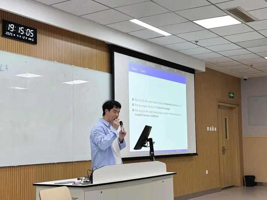 为激发学生对数学的兴趣,打破学科界限,拓宽思维视野,番茄小说 年级管委会推出数学研讨会系列活动,由学院副教授杨铮、曾鹏以及学院助理教授王鲲鹏担任指导老师。4月12日晚7:00-8:30,年级管委会于江安校区南区S205成功举办了以“Linear Algebra as a Cross-Disciplinary Toolbox: Algebra, Geometry and Physics”为主题的数学研讨会。副教授杨铮、曾鹏出席本次活动,并在研讨过程中给予了专业指导。