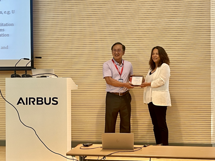 讲座尾声,空中客车中国公司人力资源及工作场所负责人宁斐为邱民京院长颁发荣誉讲座嘉宾证书。