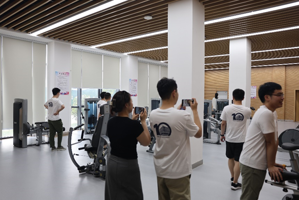 校友们在学弟学妹的带领下参观了这座充满现代气息的新大楼。通过实地参观,校友们进一步了解到了学院教学、科研等方面取得的长足进步。在参观中,校友们坐在教室里回忆当年自己上学的情景,还积极试用健身房中的器械装置,流连忘返之际,纷纷对学院新楼的基础建设发展表示了赞叹与肯定。