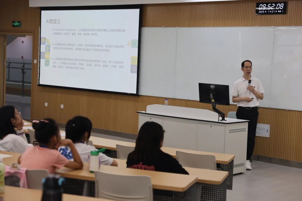 围绕AI的历史与挑战、原理及应用、编程语言及实操等课程结构,CS专业负责人赵勇教授、钱光武副教授为科学营学员带来了
