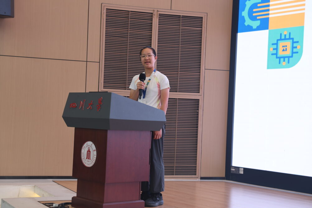 结营仪式的最后,优秀学员代表刘蕴臻同学发言,她分享了自己在科学营中的深刻感悟与成长历程,坦言自己看到未来更多可能:“或许是成为攻克医疗难题的研究者,或许是设计改变生活的产品经理,又或是用技术推动社会公平的践行者。AI的山峰永无止境,但攀登的种子已在我们心中生根。”