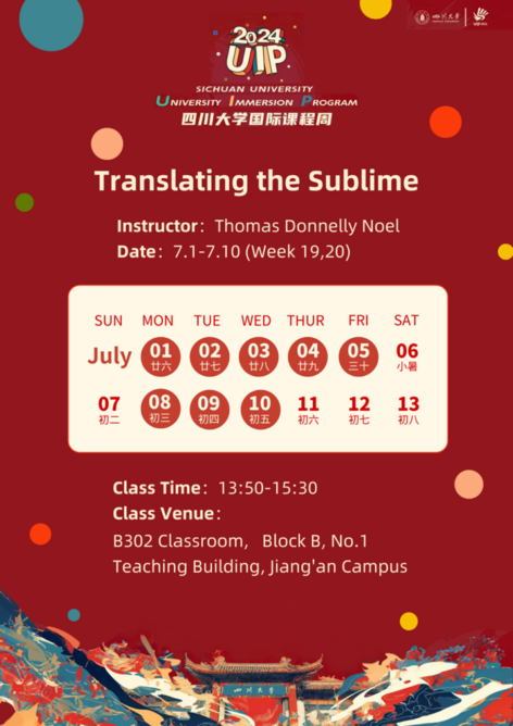 The nearly ten-day “Practice and International Course Week” of Pittsburgh Institute, Sichuan University will start in the spring semester of 2024. The Institute has invited Dr. Thomas Donnelly Noel from Villanova University to have two courses “The Good Life in Comparison” and “Translating the Sublime”. The courses will start from July 1st.