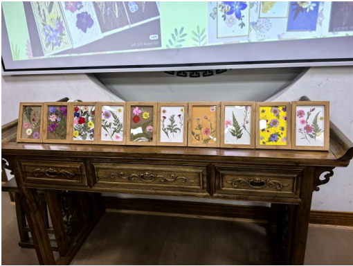 The host used a PowerPoint presentation to guide everyone into the world of pressed flower art. The explanations covered the basic principles of pressed flowers, techniques for selecting materials, methods for pressing fresh flowers, principles of composition and layout, as well as steps for pasting and framing. Additionally, a variety of outstanding pressed flower works were displayed, allowing everyone to visually appreciate the diverse expressions and aesthetic appeal of this art form. As the session progressed, the charm of blending nature and handmade artistry gradually blossomed in everyone’s hearts.