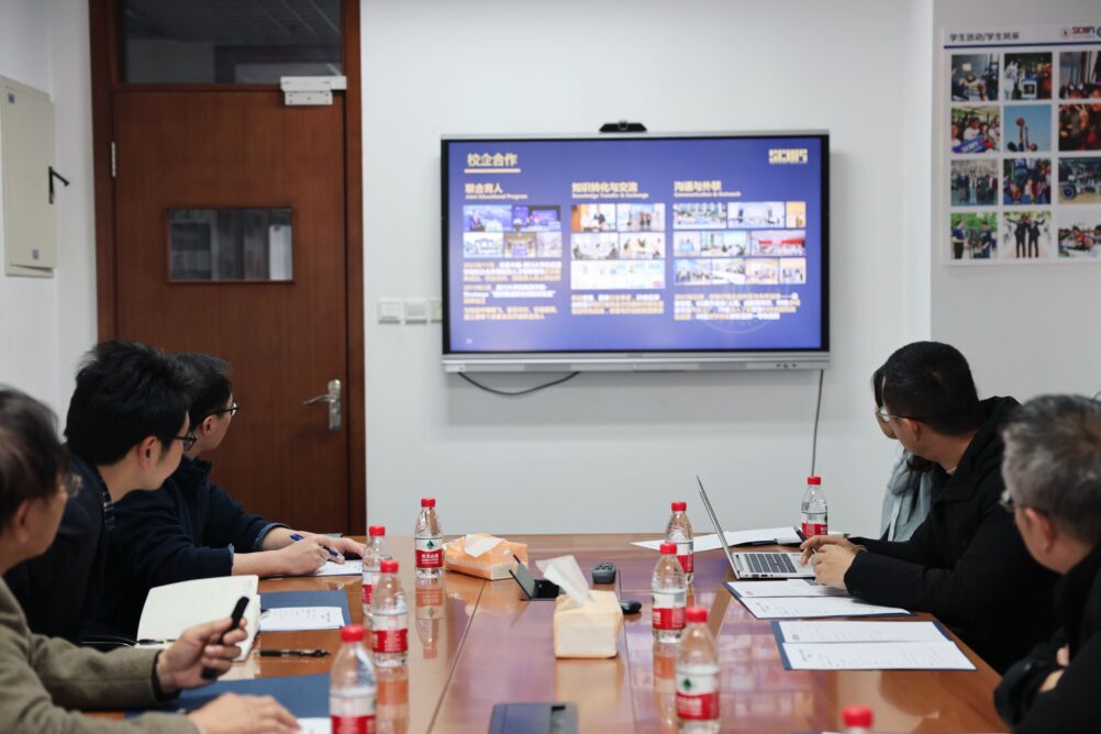 The delegation from the Assembly Workshop of FAW-Volkswagen Chengdu branch included Mr.Quan Lu, leadership of the workshop, Mr. Liyou Yuan, a Field Engineer, Mr. Jiwei Jiang, Head of Public Relations, and Mr. Rui Li, Human Resources Specialist. The representatives from SCUPI included Dr. Minking Chyu, Dean of SCUPI, Dr. T.Z. Mai, Associate Dean for Academic Affairs, Dr. Ye Li, Assistant Dean for Student Affairs, Ms. Vivi Tang, Director of Administration, faculty representatives Dr. Jianzhao Li, Dr. Xiaomei Tan, Dr. Di Liu, Ms. Michelle Xue, Career Advisor and Ms. Alina Jiang, General Administrator, participated in the discussion.