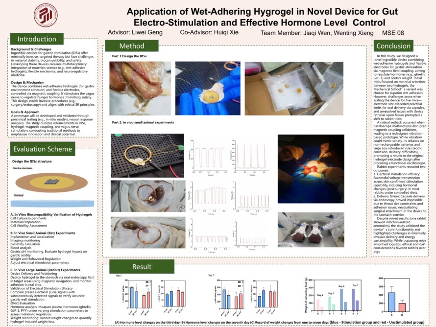 Application of Wet-Adhering Hygrogel in Novel Device for Gut Electro-Stimulation and Effective Hormone Level Control