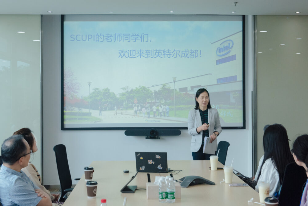 Joan Xu, the Manager of Higher Education and Corporate Social Responsibility at Intel China Public Affairs Department, first introduced in detail Intel as a Fortune 500 company, its industrial layout, development philosophy, and corporate culture to the teachers and students. Through Joan’s insightful explanations, the faculty and students of SCUPI learned about Intel’s emphasis on innovation and sustainable development. Subsequently, Yupei Liu, the Higher Education Program Officer at Intel, provided a detailed introduction to the rich higher education cooperation projects at Intel Chengdu, including various competitions, lectures, and corporate open days, encouraging students to actively participate.