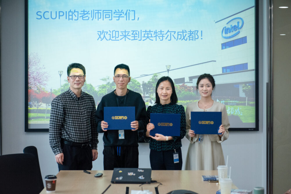 On the afternoon of April 12, 2024, led by Li Ye, Assistant Dean of Student Affairs, SCUPI, a group of 25 students from the institute, accompanied by professors Dr. Jianzhao Li, Dr. Pingqun Sui, and Career Advisors Ms. Michelle Xue and Ms.Rita Luosang, visited Intel Chengdu for a special open day event.