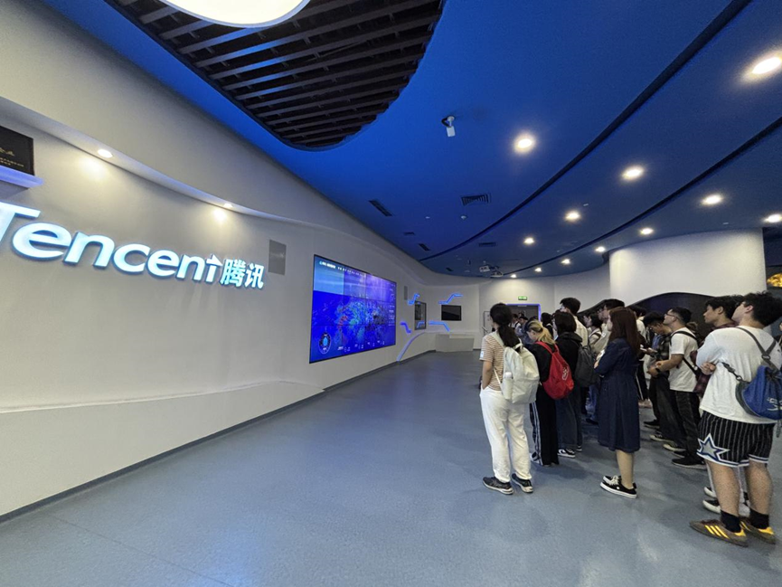 Led by professional guides, the faculty and students first visited the exhibition hall of Tencent Chengdu Tower, vividly and intuitively experiencing Tencent’s strong technological capabilities and innovative vitality, as well as its many innovative achievements, classic cases, and cutting-edge technologies in the Internet field.