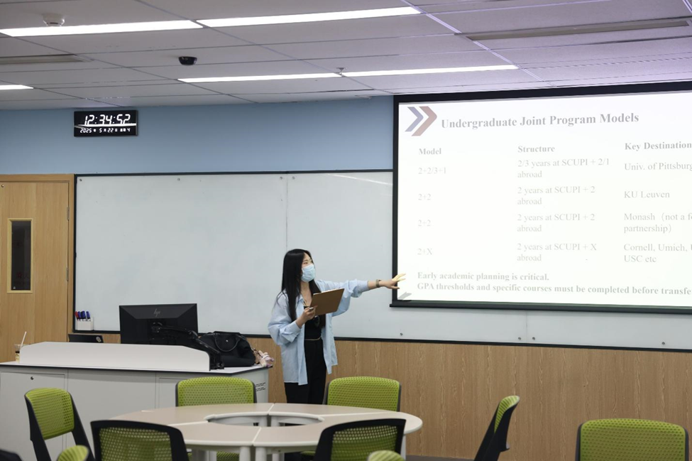 In the analysis of the undergraduate joint cultivation program, Ms. Luo explained in detail the academic arrangements of different partner institutions. She emphasized that some institutions have clear requirements on GPA standards and specific pre-requisite courses, so it is very important for students to have early academic planning for further studies. The construction of postgraduate pathways is also effective, and SCUPI has established special cooperation with more than ten international universities in Europe, America, and Asia. Ms. Chen systematically sorted out the key information of each partner institution, such as the characteristics of master’s degree cultivation, the distribution of advantageous majors, enrollment requirements, and tuition policies.