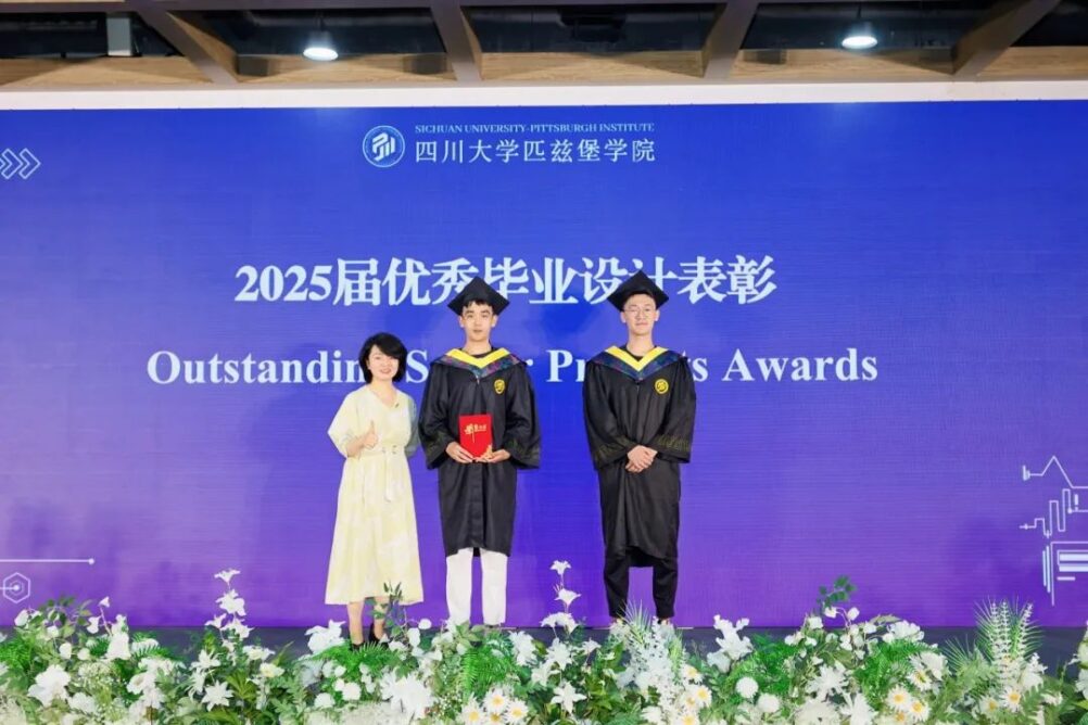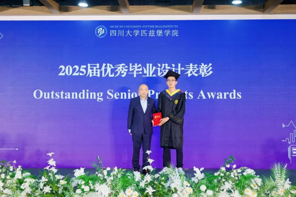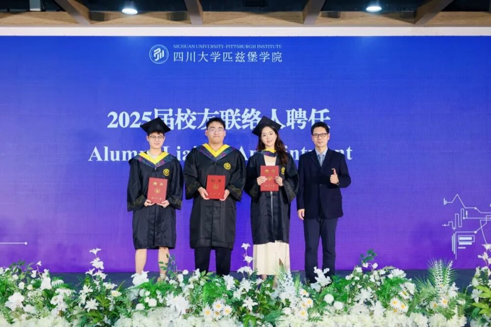 Following the video, the awards and appointments segment commenced. Deputy Director Wen Yuan and Deputy Director Jiawei Li presented honorary certificates to 10 students recognized as “Outstanding Graduates of Sichuan Province.” SCUPI Associate Deans Kang Li, Wei Tang, and Assistant Dean Di Liu presented awards to 6 graduates for “Outstanding Graduation Projects.” Associate Dean Ye Li issued appointment certificates to 3 Class of 2025 Alumni Liaisons.