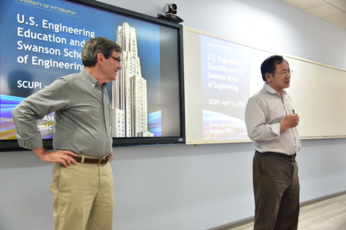 On April 12th , 2016, Larry Shuman, Distinguished Service Professor and Senior Associate Dean for Academic Affairs at University of Pittsburgh Swanson School of Engineering, delivered a speech on The Key to 21st Century Engineering Education . Dean of the Sichuan University – Pittsburgh Institute, Professor Minking Chyu, Associate Dean for Academic Affairs, Michael Reed, Associate Dean for Administration, Jie Wang, faculty representatives and students attended the lecture.