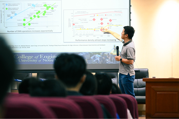 Towards the end of the lecture, Dr. Yiyu Shi allocated time for a Q&A session. Students enthusiastically asked questions, ranging from personal development inquiries to discussions on cutting-edge research, enhancing their academic knowledge through direct interaction with the professor.