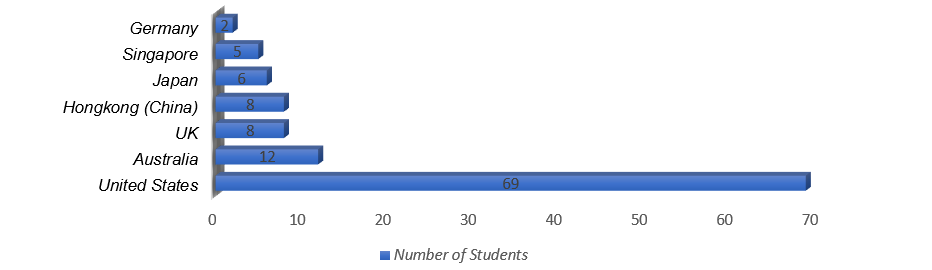 - Of the 110 degree-seeking graduates, 69 chose universities in the United States, while others chose university in different countries, including 12 in Australia, 8 in UK, 8 in Hongkong (China), 6 in Japan, 5 in Singapore, 2 in Germany.
